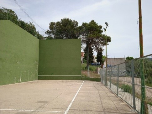 Reparar la pista de frontó mitjançant el repicat i pintat dels murs deteriorats, substitució de tanques malmeses i instal·lació de noves malles per evitar la pèrdua de pilotes, millorant la seguretat i l’ús de l’espai